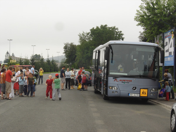 Odhod je bil seveda podoben dosedanjim odhodom na tabor: avtobus, množica staršev, množica otrok, množica opreme … Verjetno so bili najbolj 'na trnih' tisti starši, ki so otroke prvič poslali z nami. A brez skrbi - všeč jim bo. Zagotovo se bodo vrnili z zanimivimi zgodbami.