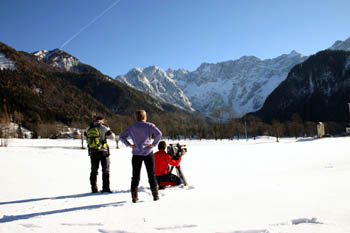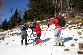 Naš član Miro, že star RTV-jevski »maček«, včasih dobi priložnost, da naredi kakšen prispevek s hribovsko tematiko. Tokrat je za oddajo Slovenski magazin snemal portret znamenitega alpinista – smučarja z Jezerskega Dava Karničarja. V prispevku bo uporabil predvsem arhivske posnetke, ki prikazujejo Davove podvige v najvišjih gorah in še zlasti na najvišjih vrhovih celin, vseeno pa je Miro potreboval tudi druge posnetke s katerimi bo okviril pripoved o Davovem podvigu smučanja z najvišjih vrhov celin. Snemanje tega materiala so opravili v torek, 30.1. v res prečudovitem vremenu. Miro računa, da bo lahko naredil dober prispevek, ki bo objavljen še v tej zimi. V prispevku naj bi bili uporabljeni tudi Davovi posnetki s smučanj z nekaterih vrhov. Ko bomo izvedeli, kdaj bo prispevek objavljen, bomo to sporočili tudi na naši spletni strani.