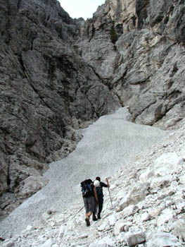 Snežišče pod vstopom v Severovzhodno deber |