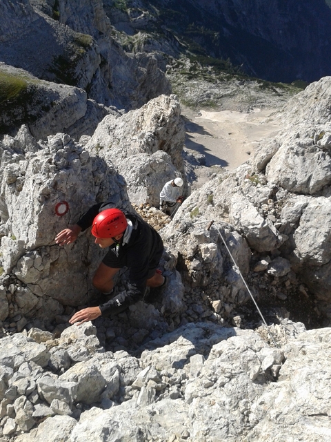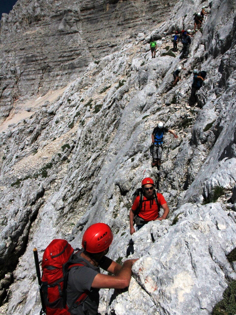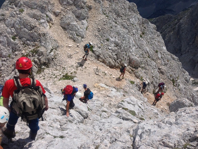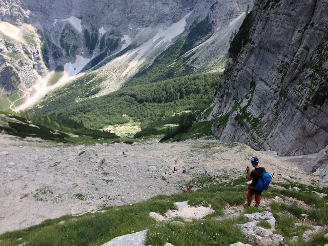 Navzdol je treba biti previden, saj ni do težjih mest nobenih varoval, veliko pa je podrtega skalovja. Foto: Janez Nastran