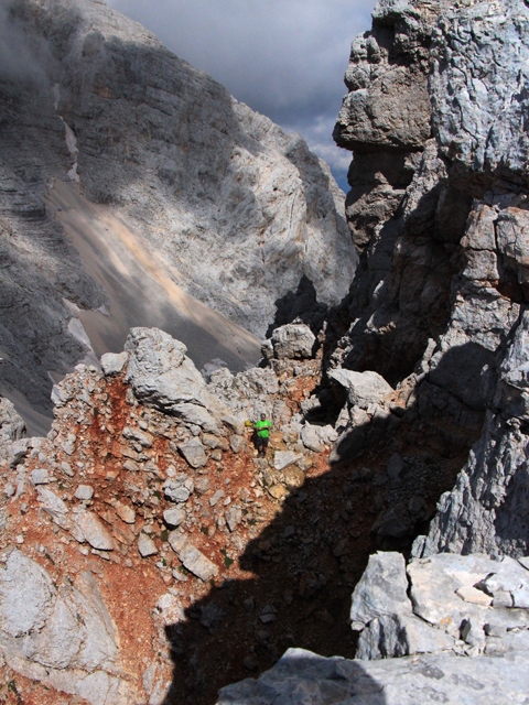 V iskanju prehodov je treba občasno tudi navzdol. Foto: Miha Pavšek