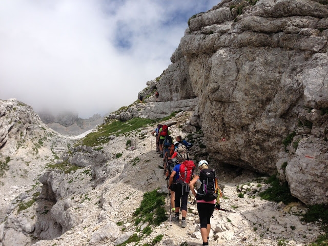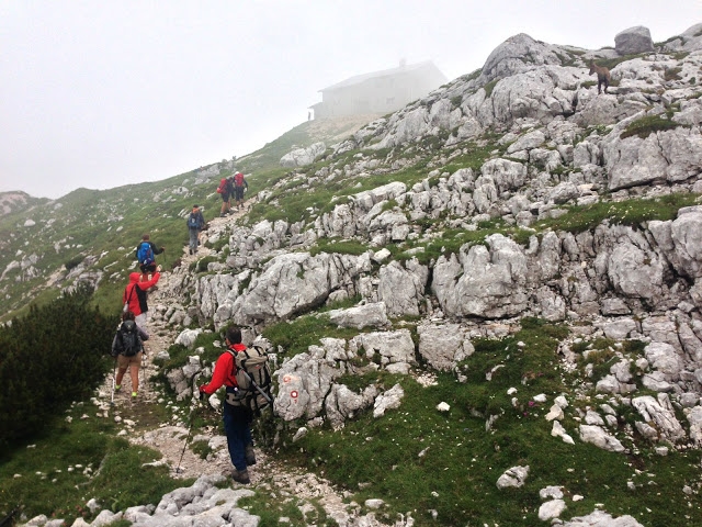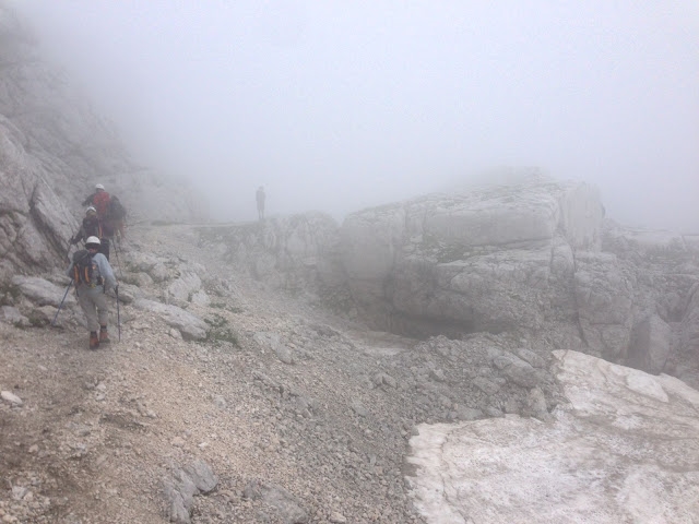 Pod Bovškimi vratci nas je "požrla" megla, ki ji je pritegnil še veter! Foto: Janez Nastran