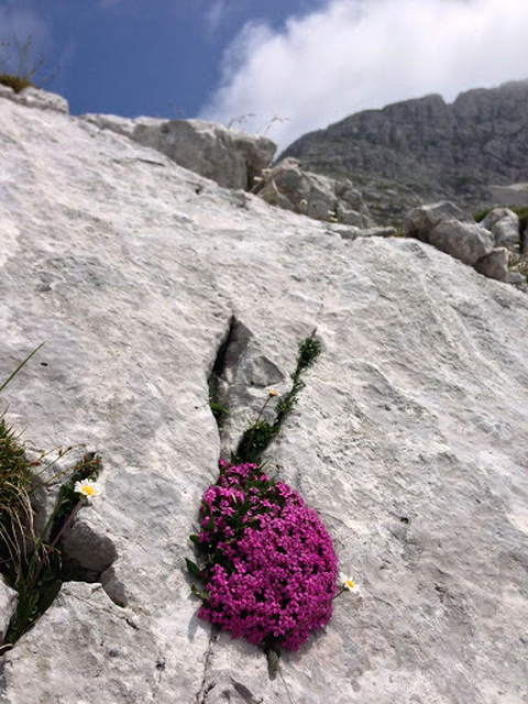 Triglavska roža s sneženim ozadjem. Foto: Miha Pavšek