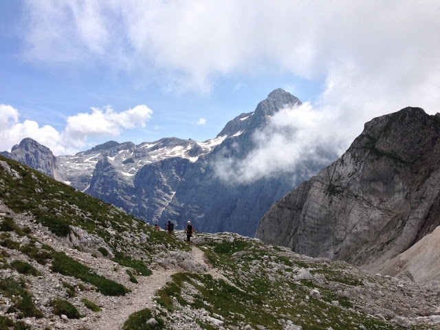 Trzinska četica tik pod vrhom Razorja, zadaj Bavški Grintavec. Foto: Janez Nastran