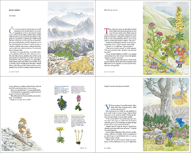 Tokrat nas Polonca Kovač z duhovitimi zgodbami popelje skozi vse letne čase in višinske rastlinske pasove naših gora, pri tem popotovanju pa bralci spoznamo več kot 30 gorskih rastlin, nekaj živali in pravljičnih bitij.