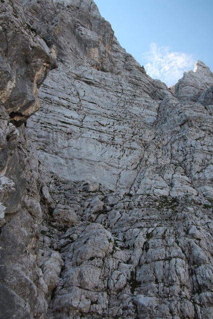 Glava (2426 m) in njen sveži podor – konec plezarije je že čisto blizu, ture pač ne!