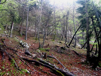 Prvi maj, praznik dela, si je Tomaž naložil malo več dela ... Zadal si je zanimiv cilj: grebensko prečenje Mešenik (1099 m) - Špegarca (1364 m) - Kamniški Dedec (1586 m). In kaj nam je poročal o svojem vzponu? Zadnji del grebena pod Kamniškim dedcem sem obhodil zaradi dežja. Zelo priporočljiv je cepin za vzpon na greben Špegarce (za kopne razmere), čelada na glavi pa prav tako ne škodi! Snega pod vrhom KD je še precej.