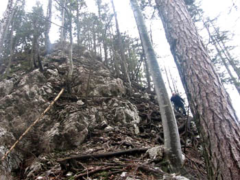 … ne uide pa nam niti vzpon po strmi grapi. Bi bilo v snegu lažje? |