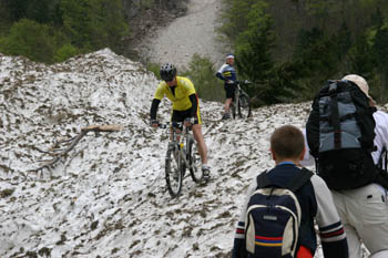 … tam pa smo poleg velikih količin snega lahko opazovali novo kolesarsko disciplino. …