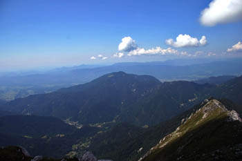 V daljavi Storžič, spredaj, pod njim Dom na Kofcah. |
