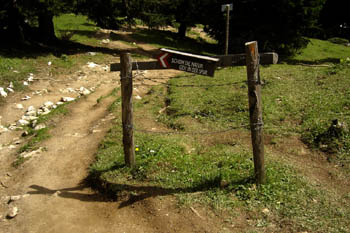 Ob vrnitvi smo tik nad Kapelsko kočo ideli zanimiv napis, ki opozarja, naj pohodniki hodijo po stezi – žal večina zavije na travo. Ko je pa tako mehka … (foto: Irena) |