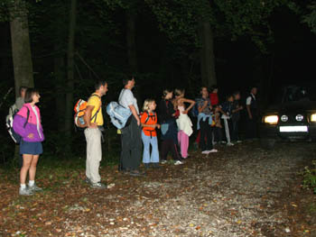 Na izletu se je zbralo kar 17 nočnih vešč: Tim in starša, Maša, Julija z očetom, Jaka, Špela, Gašper in njegovi sošolci Rok, Karin, Lara, Anja ter vodniki Tomaž, Boštjan in Miha. Štiri ure so zelo hitro minile. Ko se je stemnilo, je bila skoraj polna luna že na obzorju, zato smo z baterijami še počakali. Na vrhu zaslužen razgled na svetlo Ljubljano in bližnja naselja, tudi Kranj je bil v polni luči ter kar gost promet za to uro na gorenjski avtocesti. Sestopili smo po vsem znani »magistrali« na Rašico do kozolca, …