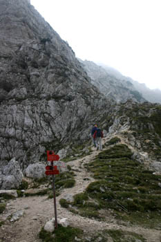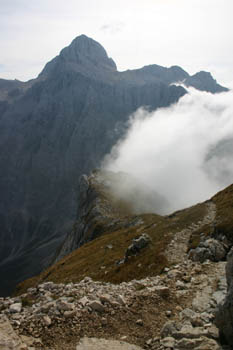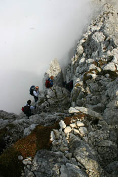 Na Bovški Gamsovec s sedla Luknja vodi na nekaterih mestih precej ozka stezica. Previdnost ni odveč! |
