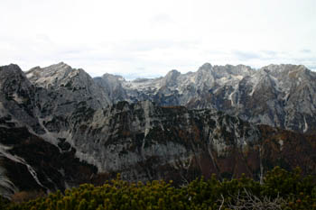 Levo Cmir, spredaj Požgana Mlinarica – tam zadaj pa vrhovi nad dolino Vrat. |