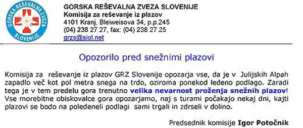 Opozorilo Gorske reševalne zveze Slovenije vzemite skrajno resno in ne ogrožajte sebe ter ljudi, ki bi vam morali hiteti na pomoč!!