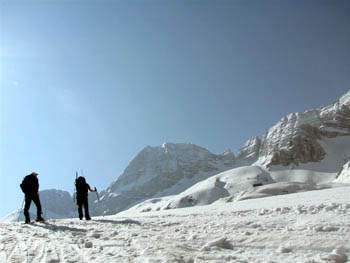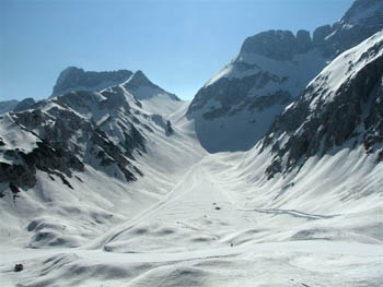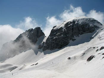 Levo zgoraj je priljubljen turnosmučarski cilj sedlo Vršič |