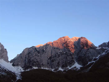 Tomaž nam je dogajanje ta vikend nad dolino Vrat opisal takole: Znana trzinska alpinistična druščina je v soboto, 28.4.2007, kraljevala v severni steni Triglava. Stena je bila v bistvu prazna, nikjer ni bilo žive duše, razen nas! Midva z Mirom sva šla po Slovenski smeri - varianta mimo Macesnov preko Prevčevega izstopa, sestopila sva čez Prag. Jaz, osebno imam dovolj adrenalina za nekaj dni! Pa Triglav, tako blizu je bil, ... sneg pa preveč južen ... ni se nama dalo več ...