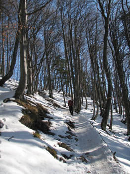 Pot proti Kališču je poledenela! Morda pa s seboj ni napak imeti kakšnih malih derez.