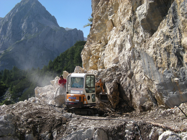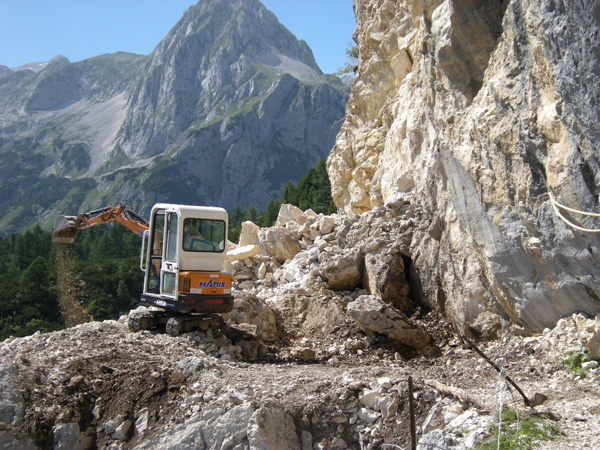 Idrijsko podjetje Kaskader je od 14. do 20. julija odstranilo skale podora, ki je zasul eno najbolj obiskanih planinskih poti pri nas, ki vodi z Rudnega polja proti Vodnikovemu domu in naprej proti Triglavu. Pot je sedaj očiščena v celoti in v prvotnem stanju. Odstranjeni so tudi vsi labilni bloki, ki so ogrožali pot. V podjetju ocenjujejo, da so odstranili ok. 600-700 m³ skal. Največja je imela okoli 100 m³, ena okoli 40 m³, veliko pa jih je bilo prostornine 2-5 m³. Ker je bil kopač zaradi prenosa s helikopterjem majhen (1500 kg), so morali skale drobiti z miniranjem.