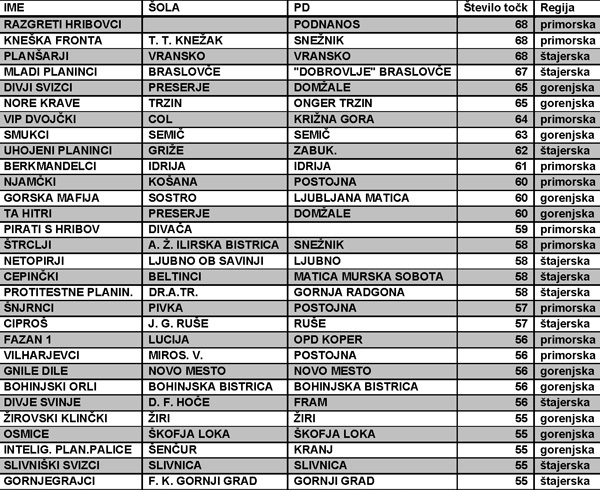 20. regijska tekmovanja Mladina in gore (rezultati)