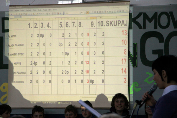 Trzinska ekipa 'Nore krave' (Špela Kralj, Jaka in Matevž Peternel, Aljaž Pavšek) si je na Bledu delila 1. mesto z ekipo 'Divji svizci' iz PD Domžale (OŠ Preserje), v skupni razvrstitvi pa sta ti dve ekipi zasedli 5. mesto.