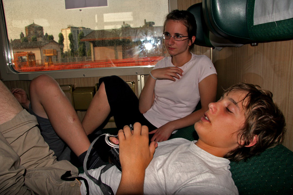 Špela in Jaka na vlaku iz Benetk proti Pescari