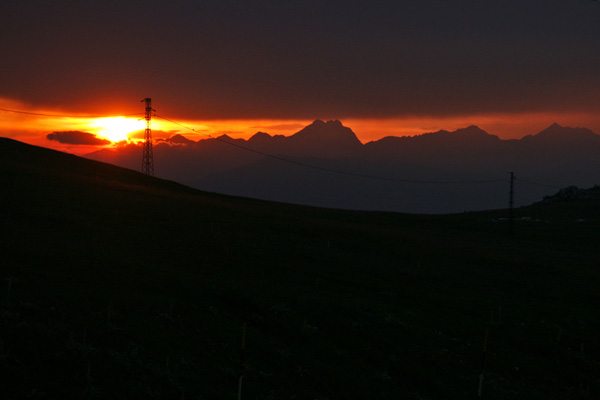 Sončni zahod v nacionalnem parku Majella ter pogled proti gorski skupini Gran Sasso