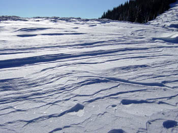 Slika ne more prikazati lepih motivov, ki smo jih bili na celi poti deležni. Oblikoval pa jih je veter (zastrugi) |