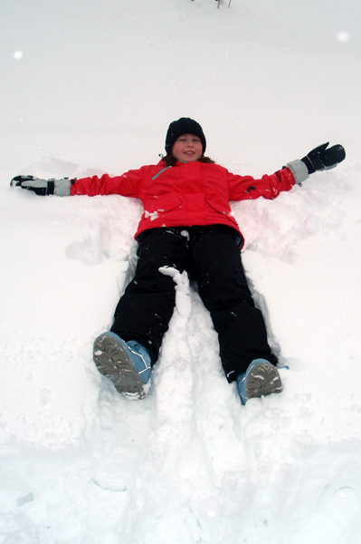 A kdo pravi, da navaden smrtnik ne more hoditi po vodi? Tako smo ob prijetnem tempu hitro prispeli do planine, kjer smo si malo odpočili, okrepčali, se kepali, metali sneg in delali angelčke.