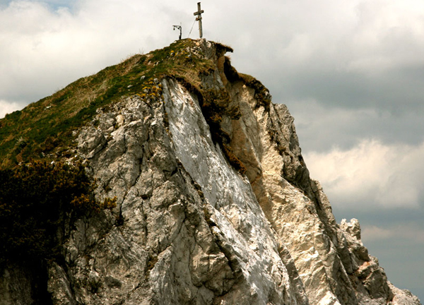 Na vrhu Trupejevega poldneva je prišlo do odloma na avstrijski strani. Gibanje okoli križa in po robu je zelo nevarno! (Peter Najdenov)