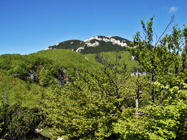 Takole – sramežljivo in skozi bukove krošnje – se nam je prvič pokazal vrh. (foto: BK)