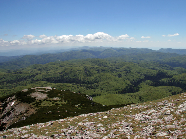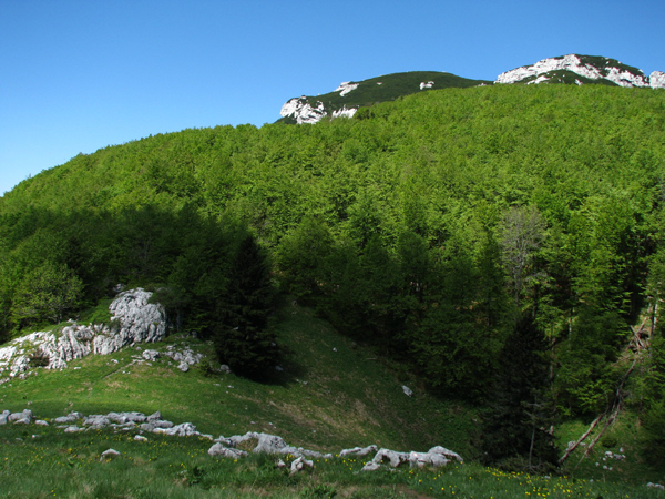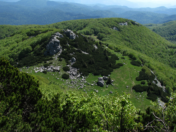 Vsi prej omenjeni gozdovi, vrtače in kotanje, pa tudi številne vzpetine, so bile naenkrat pod nami, v dalji pa še nov sinji odtenek, namreč morja v Kvarnerskem zalivu.
