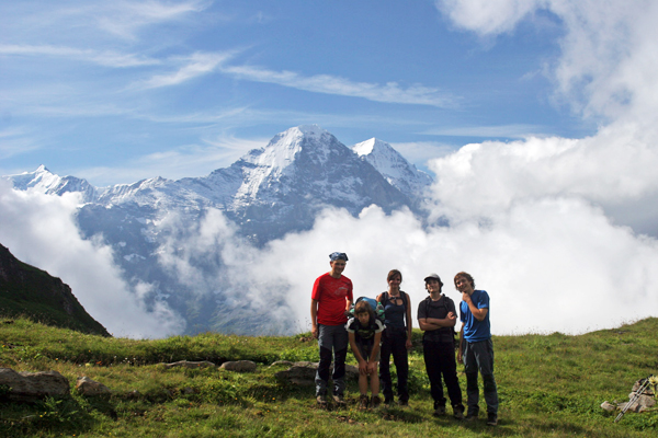 Za prvo turo smo si izbrali Faulhorn (2681 m). Vreme ta dan ni bilo namenjeno dobrim razgledom, ampak vsake toliko časa smo vendarle lahko opazovali severno steno Eigerja.