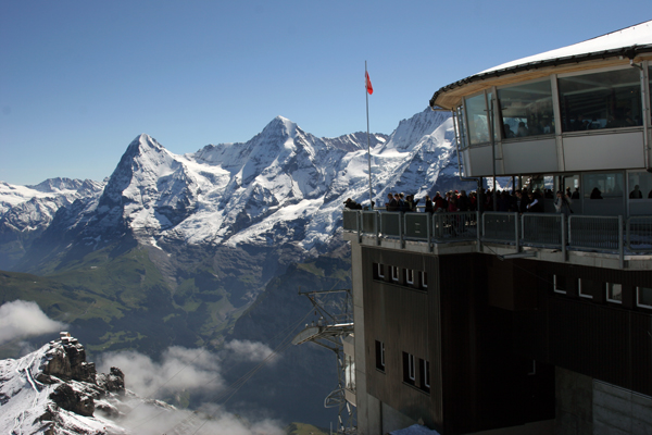 Druga velika tura je nastopila šele v soboto, saj nas je v petek presenetil dež, kar je bilo po svoje odlično. Dež je namreč spral ozračje in nam pozneje ponudil čudovite razglede. Po naporni poti, ki je bila, tako kot vse druge švicarske poti, precej strma, poleg tega pa proti vrhu zasnežena, smo prisopihali na 2970 m visok Schilthorn. Za razliko od ostalih vrhov, smo tik pod tem vrhom stopili na stopnice in se prav "herojsko" po njih povzpeli na ploščad polno turistov. Na ta vrh je namreč speljana tudi gondola, kar omogoča dostop tudi tistim, ki ne planinarijo. In če smo že pri herojskih dejanjih: Na Schilthornu so posneli nekatere kadre za film o tajnem agentu 007 Jamesu Bondu (V službi njenega veličanstva, 1969). Švicarji znajo to dejstvo še vedno dobro pretaplati v denar. V restavraciji na vrhu, ki se imenuje Gloria v dopoldanskih urah postrežejo npr. z James Bond 007 samopostrežnim zajtrkom. Razgledna ploščad in množica turistov nam torej ni pokvarila odličnega občutka ob vzponu na vrh. Bili smo namreč nagrajeni s kristalno jasnim razgledom. Veliki vrhovi kot so Eiger, Mönch in Jungfrau so pred nami stali kot na dlani, pogled pa nam je segel vse do oddaljenega Mont Blanca. Belina in divjost teh vrhov sta nas vse očarala, veličina njihovih strmih sten pa prevzela.