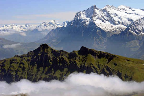 Greben Lauberhorn, v ozadju pa izstopa Wetterhorn.