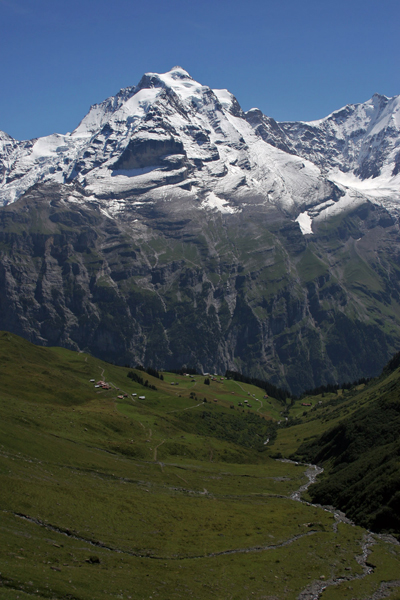 Sledil je spust v proti vasici Murren in nazaj v dolino. Lepo vreme nam je omogočilo, da smo občudovali zahodno steno gore Jungfrau.