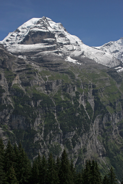 In še celotna zahodna stena Jungfraua, preko katere padajo nešteti slapovi.