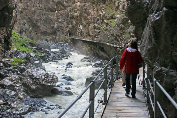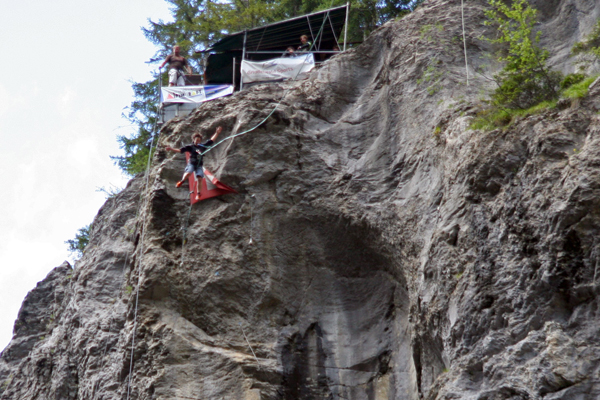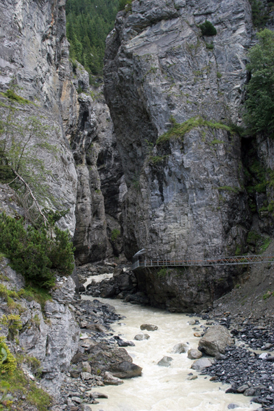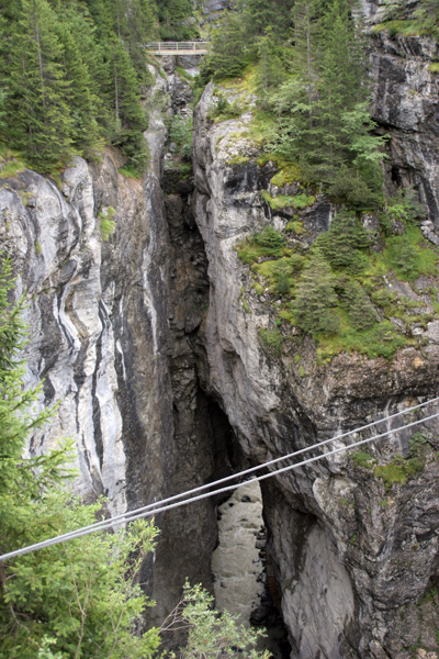 Seveda znajo Švicarji vsako stvar imenitno izkoristiti in tako so tudi več kot 100 metrske stene soteske Gletscherschlucht izkoristili za bungee jumping in veliko gugalnico.