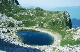 Po bivakiranju najprej na Rdeči rob, potem pa mimo jezera v Lužnici naprej proti Krnu