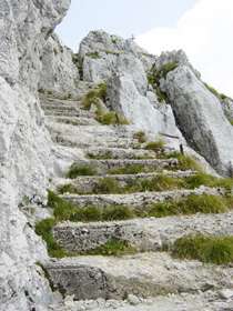 Stopnice, ki povezujejo vrh Batognice in Krnsko škrbino. Kdor želi, naj pokuka še na tole povezavo (priporočamo, da odprete povezavo v novem oknu). Stopnice boste videli še na drugačen način