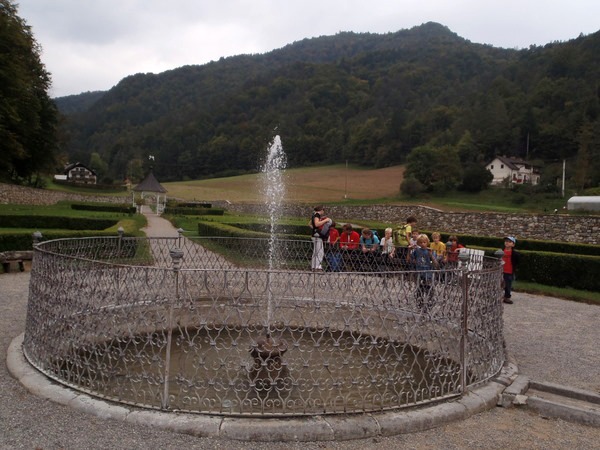 Postanek v grajskem vrtu, kjer smo si ogledali tudi račke, labode, ribe in žabe.