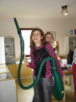 Neli in Petra sta se prelevili v čistilke oken. Zraven je pomagala tudi Eva. |