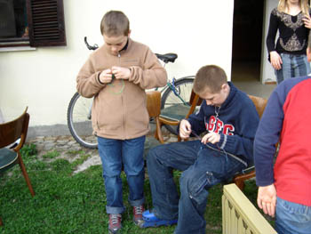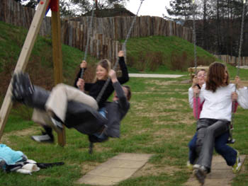 ... medtem ko so nekatere od punc srečanje končale na bližnjem igrišču. Opozorilo: Gugalnice tako škripljejo, da smo posneli kar film v dokaz - naj se kdo gugalnic usmili s kapljico olja ... :-) |