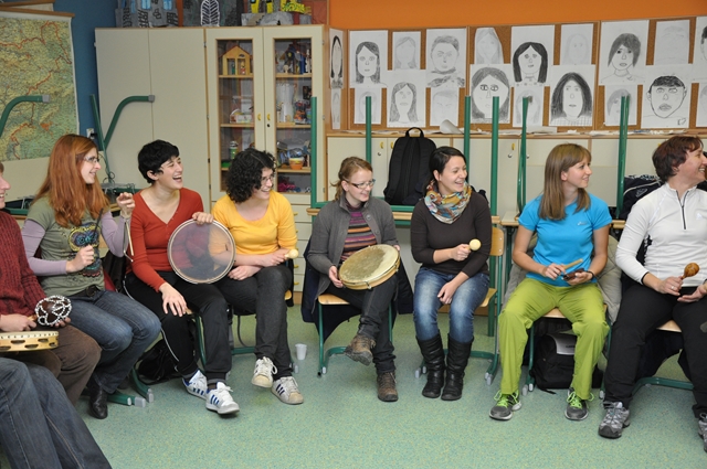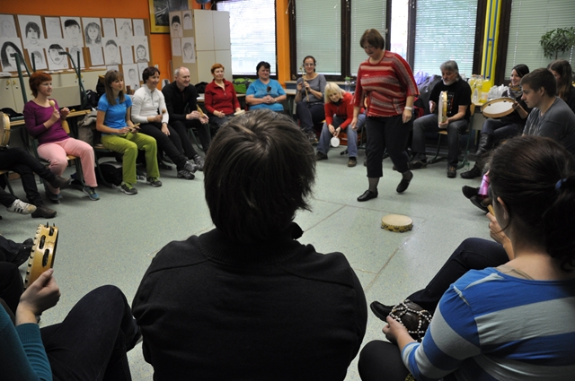 Najprej je mag. Bernarda Rakar, strokovna svetnica na pedagoškem oddelku Akademije za glasbo poskrbela, da je iz svoje bogate zakladnice glasbenega znanja in izkušenj predstavila nekaj idej, kako z glasbo popestriti planinske krožke, izlete in tabore.