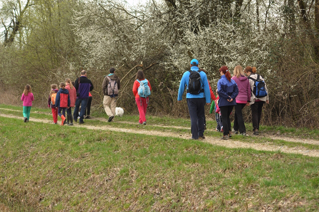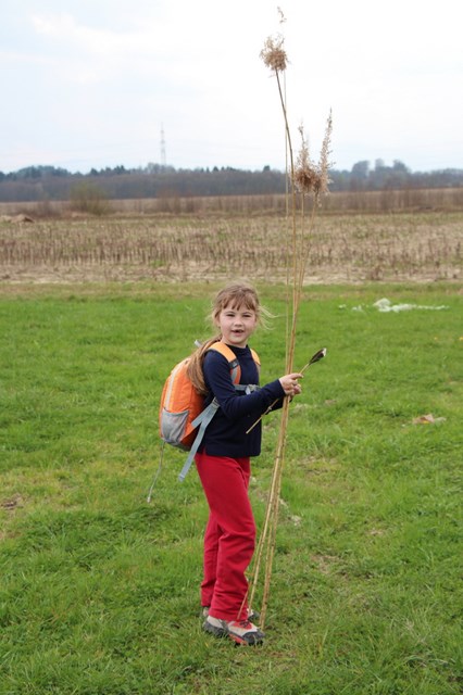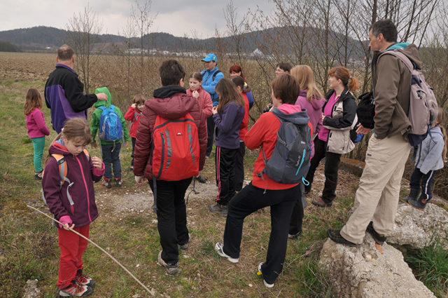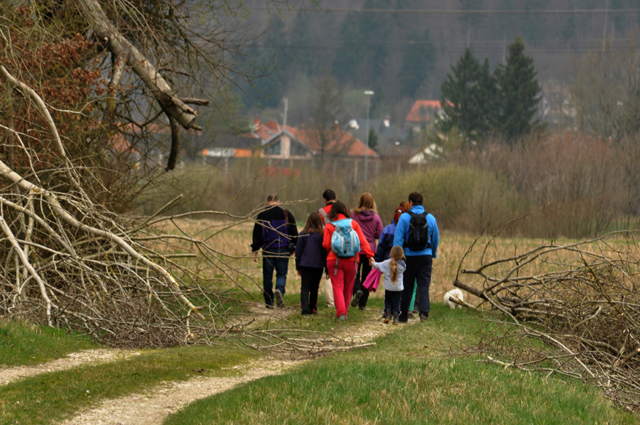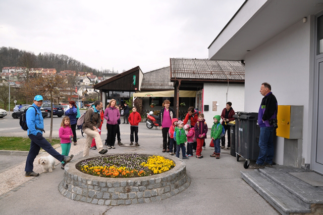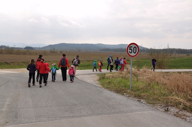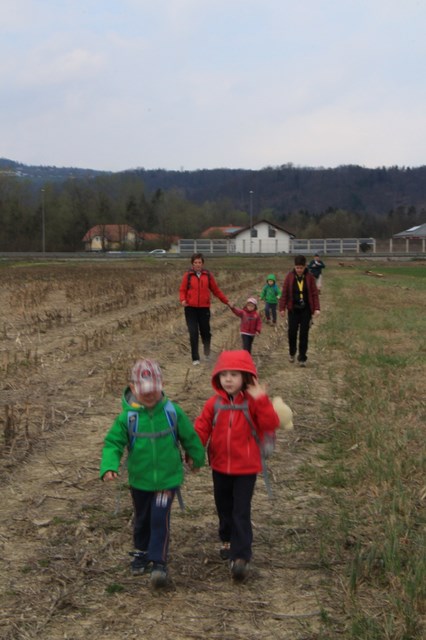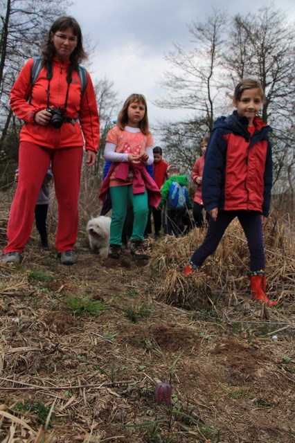 Tole je bilo pa hitro. Zvedeli smo, da so močvirski tulipani, ki jih v Trzinu imenujemo žerjavčki, že v cvetju. Da pomlad prehiteva po levi in desni ... Miha je hitro šel v akcijo, povabil ljudi na sprehod, Miro je obljubil vodenje po skritih poteh južno od Trzina. In smo šli. Pred trgovino "najboljšega soseda" se nas je nabralo 21 (+ 1 pes). 10 odraslih in 11 otrok - ravno pravšnja zasedba.