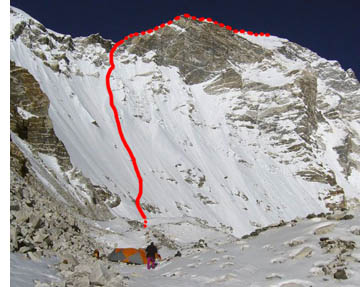 - 2001: Leta 2001 sta bili na gori dve naši odpravi. Najprej majhna odprava AO Slovenska Bistrica. Na vrh se je po normalni smeri povzpel Primož Pišek (25.09.). Nato je sledila odprava PZS in Slovenske policije. 10.10. se je na vrh že drugič povzpel Viki Grošelj in z njega tudi smučal(!).