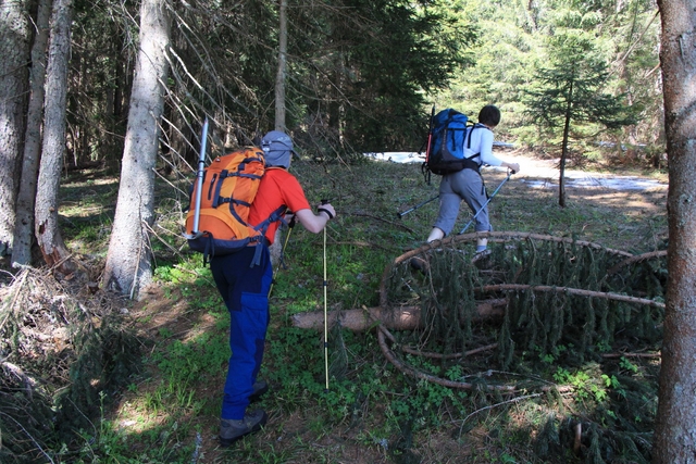 Za nami je še eden izletov, ki ti še dolgo časa ne gredo iz glave in te tolažijo v urah in dneh, ko si prikovan v dolinski pisarni in čakaš na konec tedna, ko greš kvišku, kjer šepeta tišina. Tej so se tokrat pridružile vonjave na eni strani polomljenega, na drugi pa brstečega se drevja, grmovja in cvetovja ter zaradi obilno snežne zime ponekod že prav kičasta belo zelena gorska scena. Nekaj časa bo ta še na voljo, za kasneje pa še enkrat opozorilo – letos sta za visokogorje cepin in čelada (slednja vedno!) sestavni del obvezne opreme, za gozdove na poti do visokogorja pa marsikje tudi žaga. A ta le v rokah izkušenih gozdarjev, planinci pa se bomo morali navaditi na to, da se bomo še več let izogibali podrtemu drevju.
