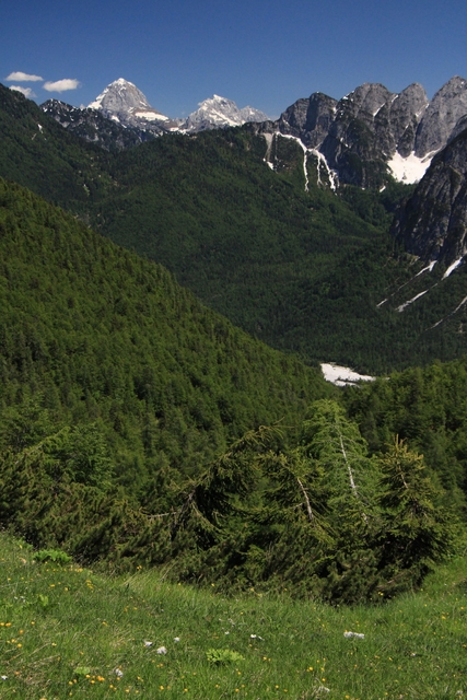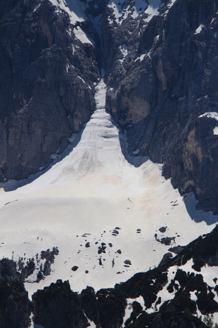 Snežišča pod Strehico, zadaj Kanalska dolina.