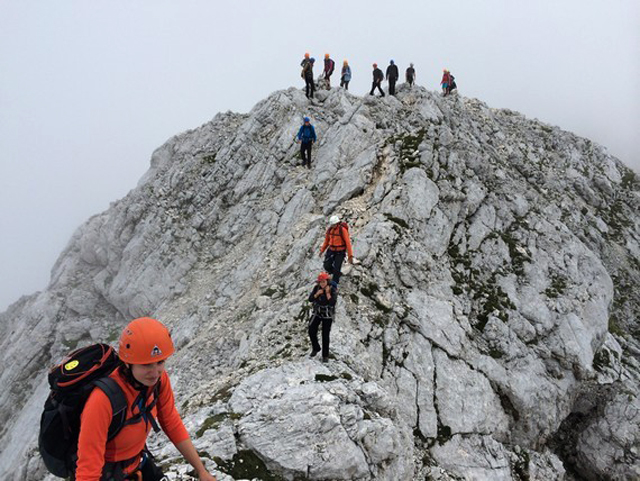 Članica vodstva Špela Kralj (na sliki Domna Strleta jo krasi oranžna čelada, op. ur.) nam je predstavila podrobnejši pogled z druge strani mize: "Na seminarju so se spoznali z zanimivo mešanico vsebin in znanj, ki jim bodo koristila pri delu z mladimi planinci. Skupaj smo obnovili znanje iz prve pomoči, gibanja v gorah, bivakiranja, uporabe vozlov in opreme, se ukvarjali z orientacijo ter spoznavali družabnost skozi teorijo in prakso."