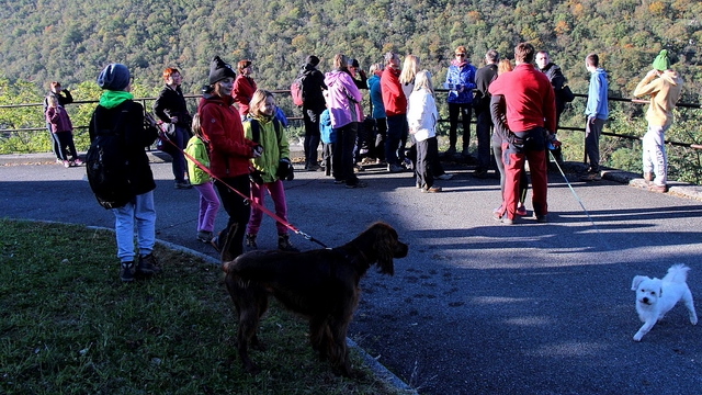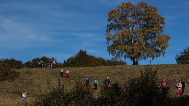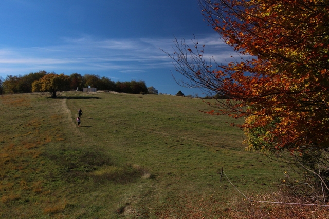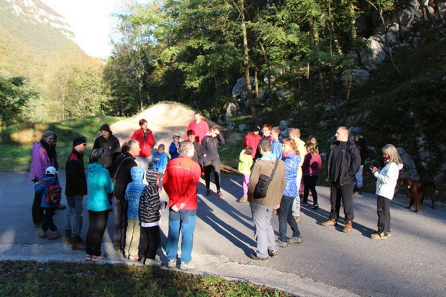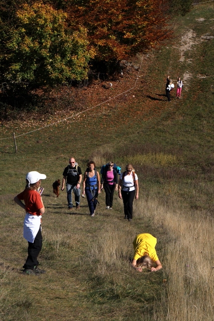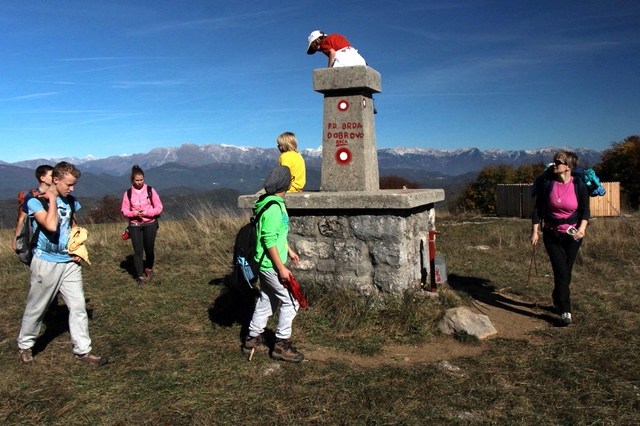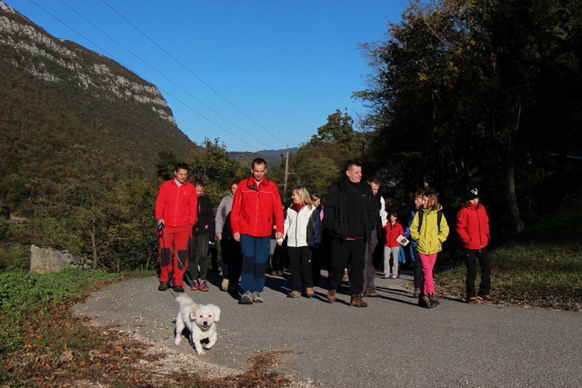 Spodaj napovedano "grožnjo" smo v tretje le uresničili in se na trenutke malo bolj strmo povzpeli ter precej bolj položno spustili prek Korade. Očitno se šele v krompirjevih počitnicah vreme "pokrompiri"! Začeli smo z vodo na Mrzleku (od tam pijejo vodo Goričani in okoličani že vse od l. 1934!), končali pa z vinom pri Štekarju v Snežatnem. Vmes smo ošvrknili še HE Plave, zaselek Vrtače, cerkvico sv. Genderce, arheološko dediščino velike (1. svetovne) vojne ter prav na vrhu tudi točko kombinirane geodetske mreže in gobje dežnikarice. In, kar je nemara najpomembneje, se nagledali jesenskih barv in razgledov - od Triglava do Tržaškega zaliva ter Dolomitov in Nanosa z Vremščico. A kdo - ja pisana PD/DPM-druščina Trzincev z gosti in dvema štirinožnikoma (ni enako štirikolesnikom ...). Eden teh je že stari znanec, sicer ljubitelj za hip odloženih sendvičev, drugi - novinec - pa je tekal še najmanj za tri. Kaj več o tem pa v novembrskem Odsevu, škoda črk, ko pa fotografije povedo veliko več. Kdor ni bil z nami, bo pa drugič - itaq!